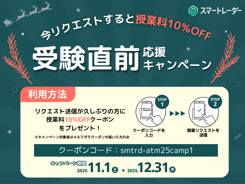 この機会にぜひスマートレーダーの家庭教師を使って合格を掴み取りましょう!