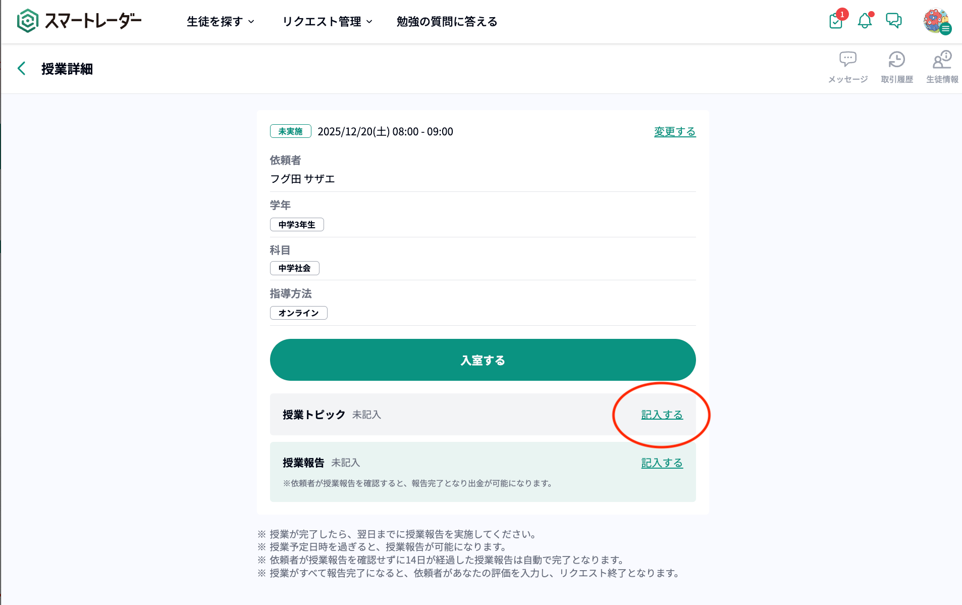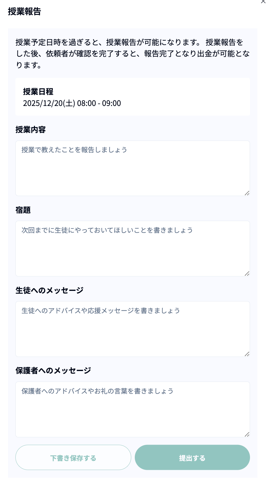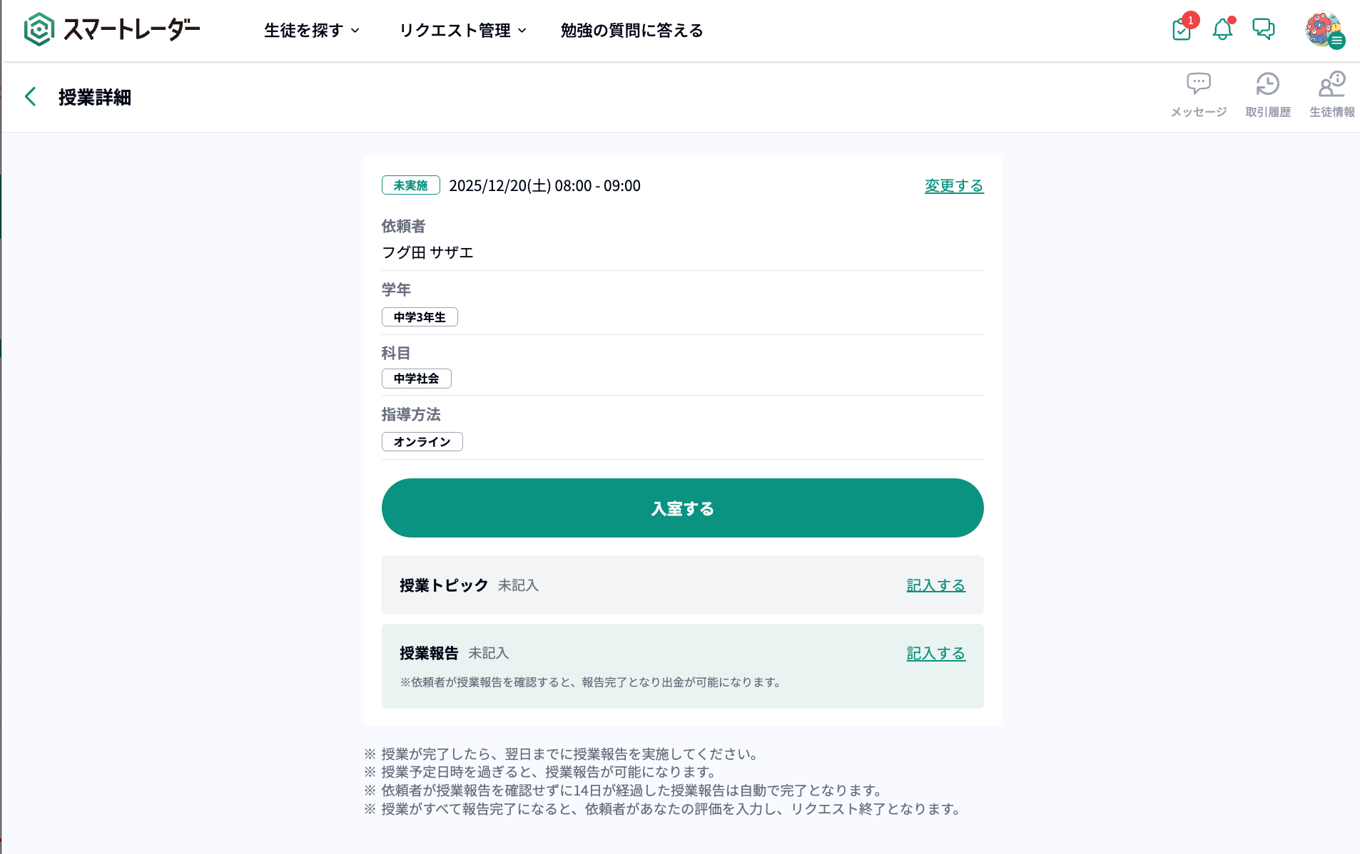 授業報告を依頼者が確認した時点で、リクエスト終了となります。