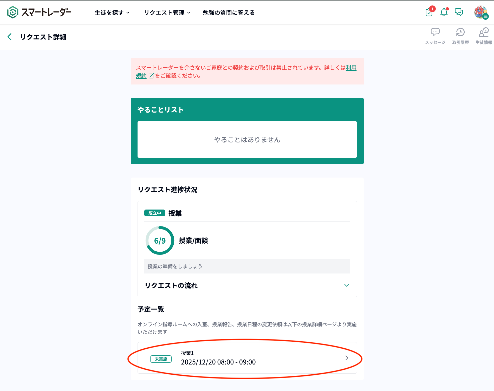 リクエストが成立したら、授業開始までの間にオンライン授業の準備をしましょう。