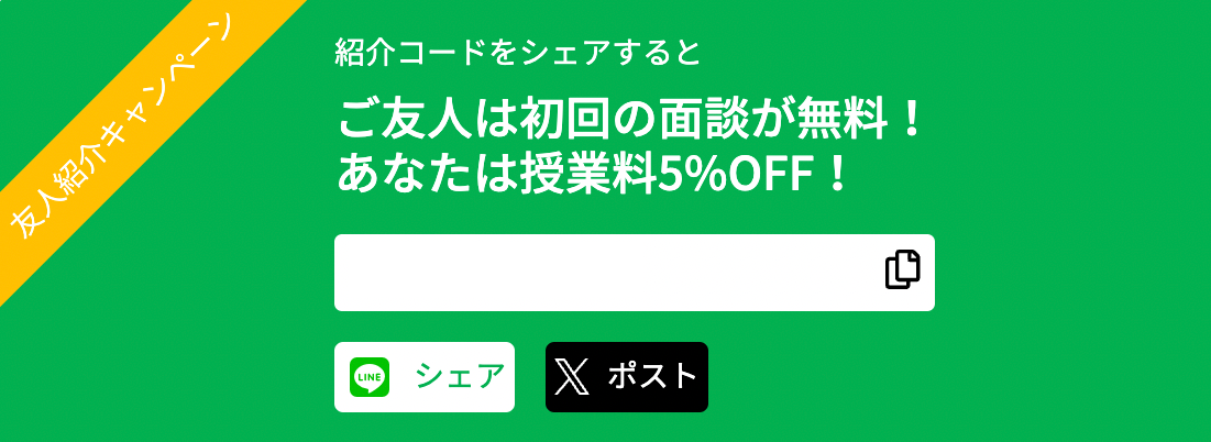 ご友人を紹介していただいた方には、ご友人が初めて先生と契約すると授業料5%OFFクーポン