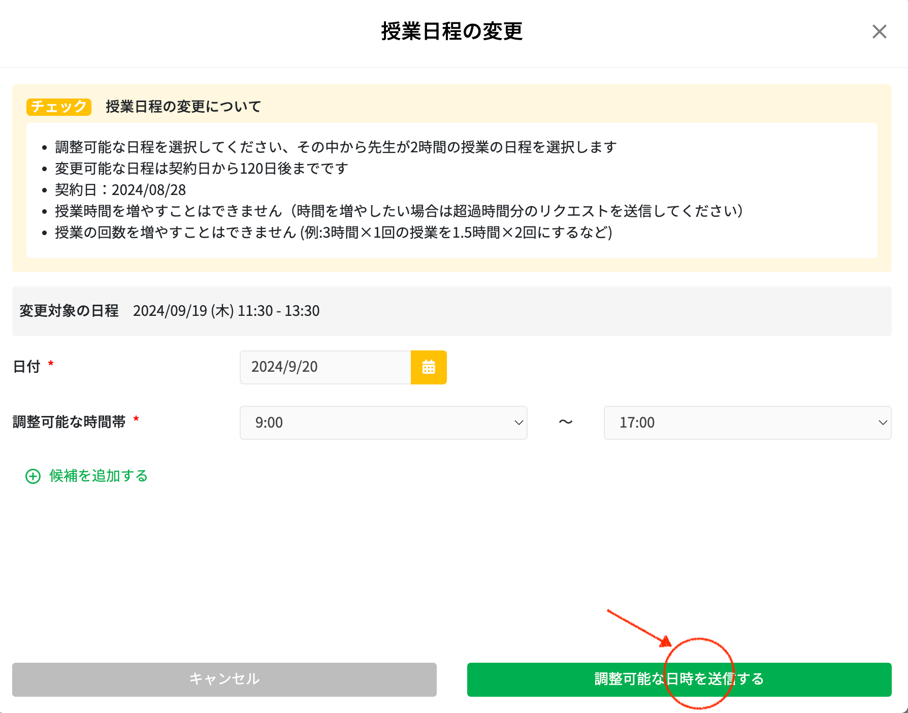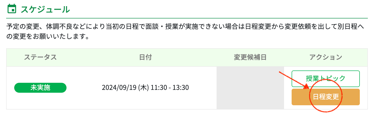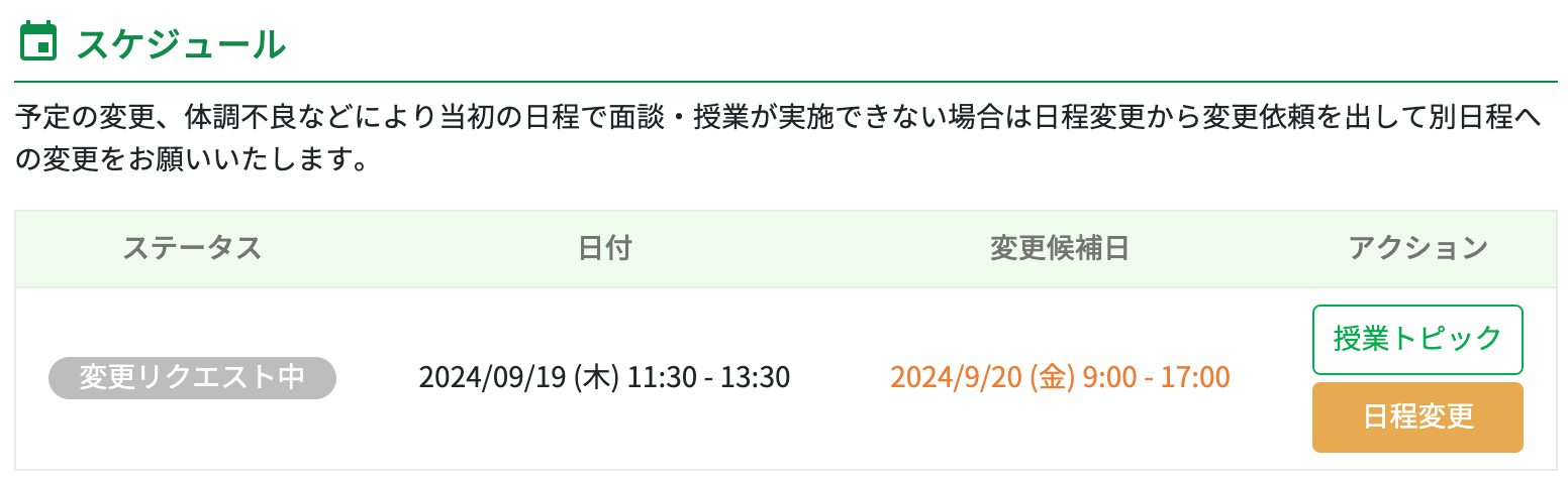 2.リクエスト一覧から日程変更をしたいリクエストを選択し、日程変更ボタンを押す