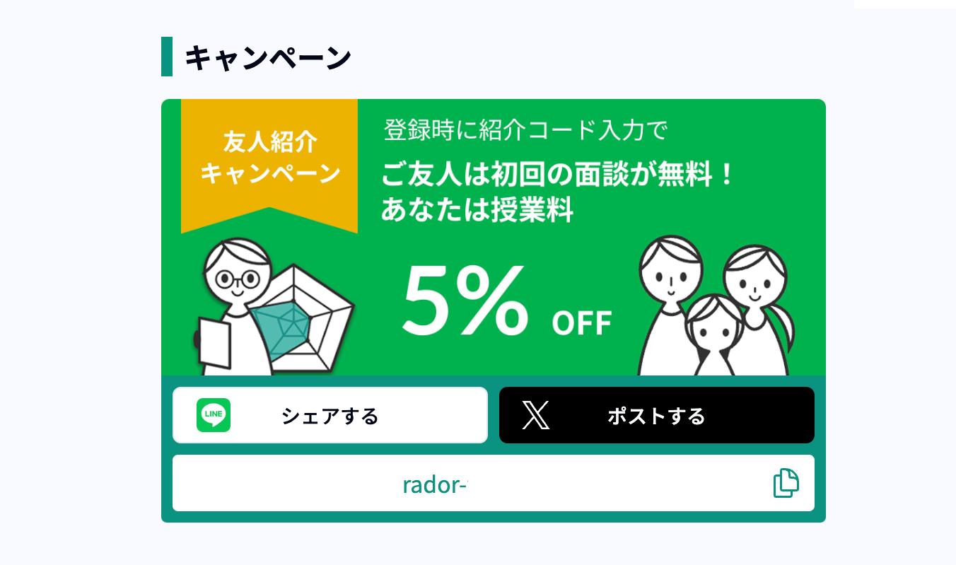 ③ その他で共有する場合:下部の紹介コードをコピーしていただき、ご友人にご共有ください。