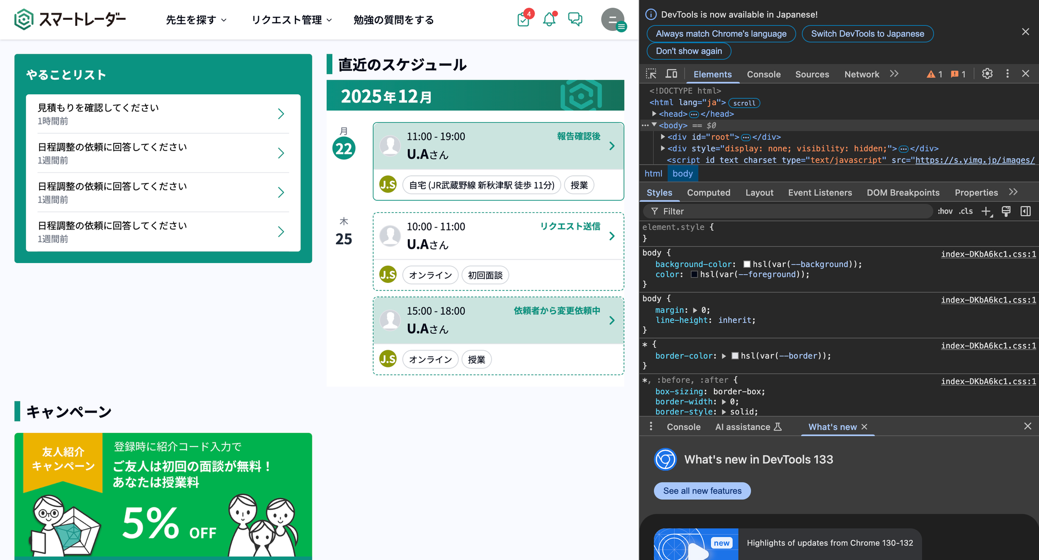 デベロッパーツールを閉じると日本時刻の設定が無効化されますのでスマートレーダーをご利用中は閉じずにお使いください