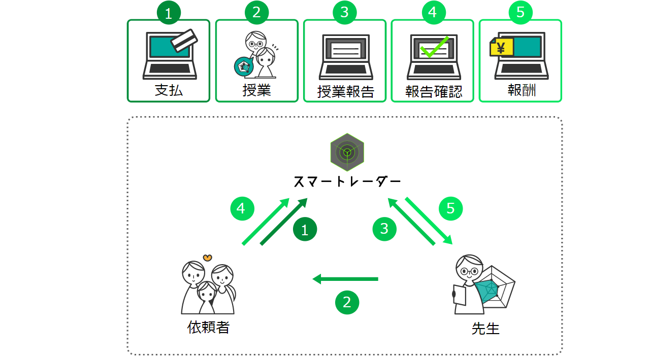 依頼者様が授業報告を確認すると、実施した授業の報酬(交通費を含む)が先生の報酬残高に追加されます。